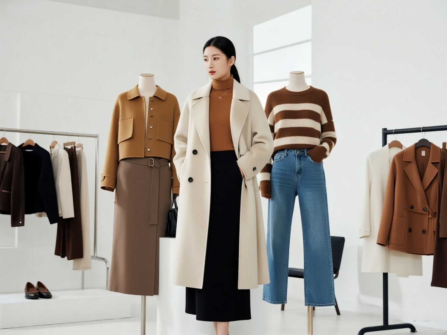 秋冬の保温裏起毛ニットワイドパンツ